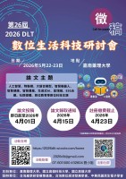【研討會】【徵稿啟動】2026 DLT 數位生活科技研討會 2026 DLT 數位生活科技研討會:邁向數位轉型與 ESG 新紀元! 🚀 各位學界與產業界的夥伴大家好! 深耕資通訊領域、...more