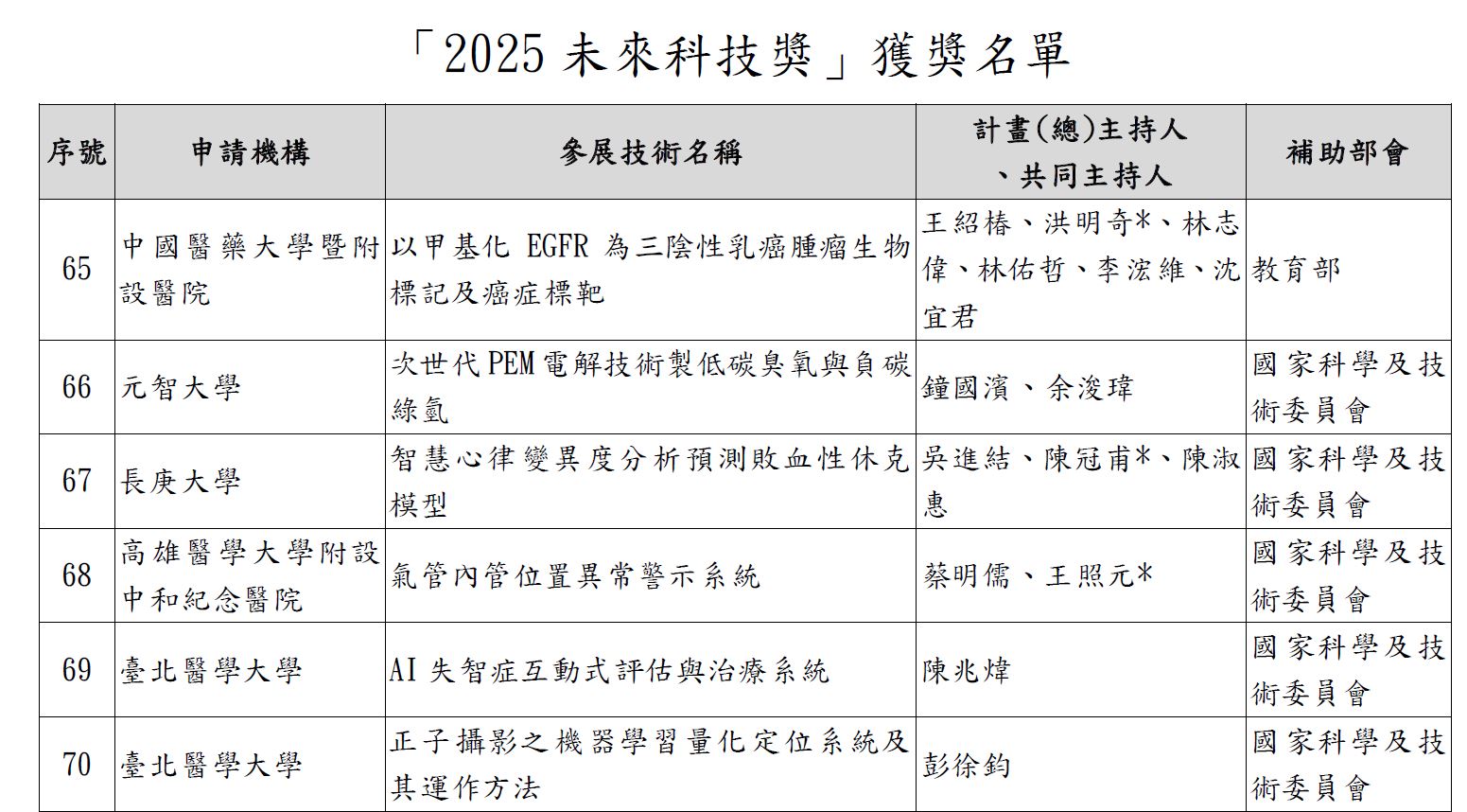 【恭賀】本專班彭徐鈞主任團隊獲2025臺灣創新技術博覽會 - 未來科技獎